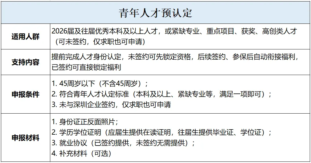 - 预认定资格长期有效,毕业生毕业、在深参保后,会自动衔接正式人才认定及补贴发放;