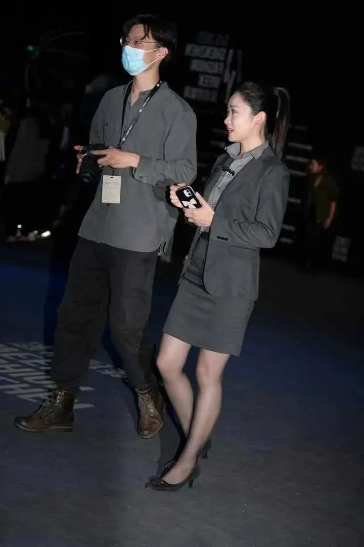 在夜色里,她的身影被镜头摄下。梳着高马尾的她笑得非常灿烂,眼睛弯弯的,看着身边的人。深灰色套裙加浅灰色衬衫,简洁不简单,没有言语的传播却给世界传递着信息,“职场穿搭既有品味又有舒适感”。