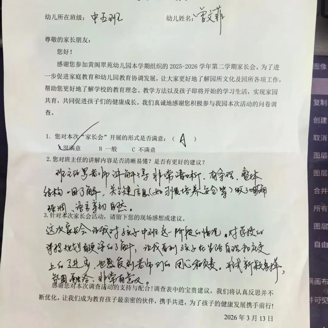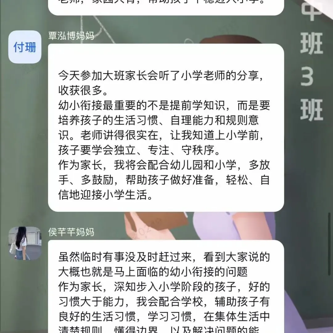 在中班家长会的“灵光碰撞”环节,各班围绕本学期的核心培养目标展开了深度研讨,共同勾勒出家园共育的蓝图。