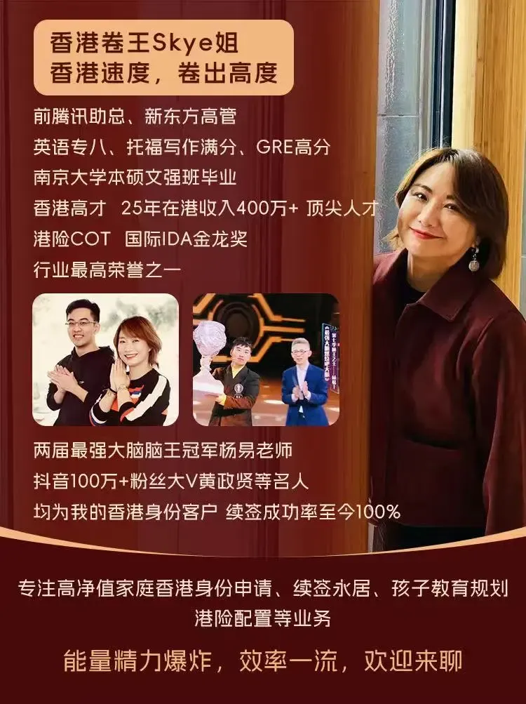 拿香港临时身份,就是,高才学历类,夫妻一方本科全球100名校毕业,或者高才收入类,年收入240万以上严格报个税七八十万,或者都不符合就去读一年香港水硕拿身份,最差要有全日制本科毕业。不要相信什么优才专才你能获批,90%的人都条件不可能符合的,就是高才和读硕拿身份,具体微信找我咨询。