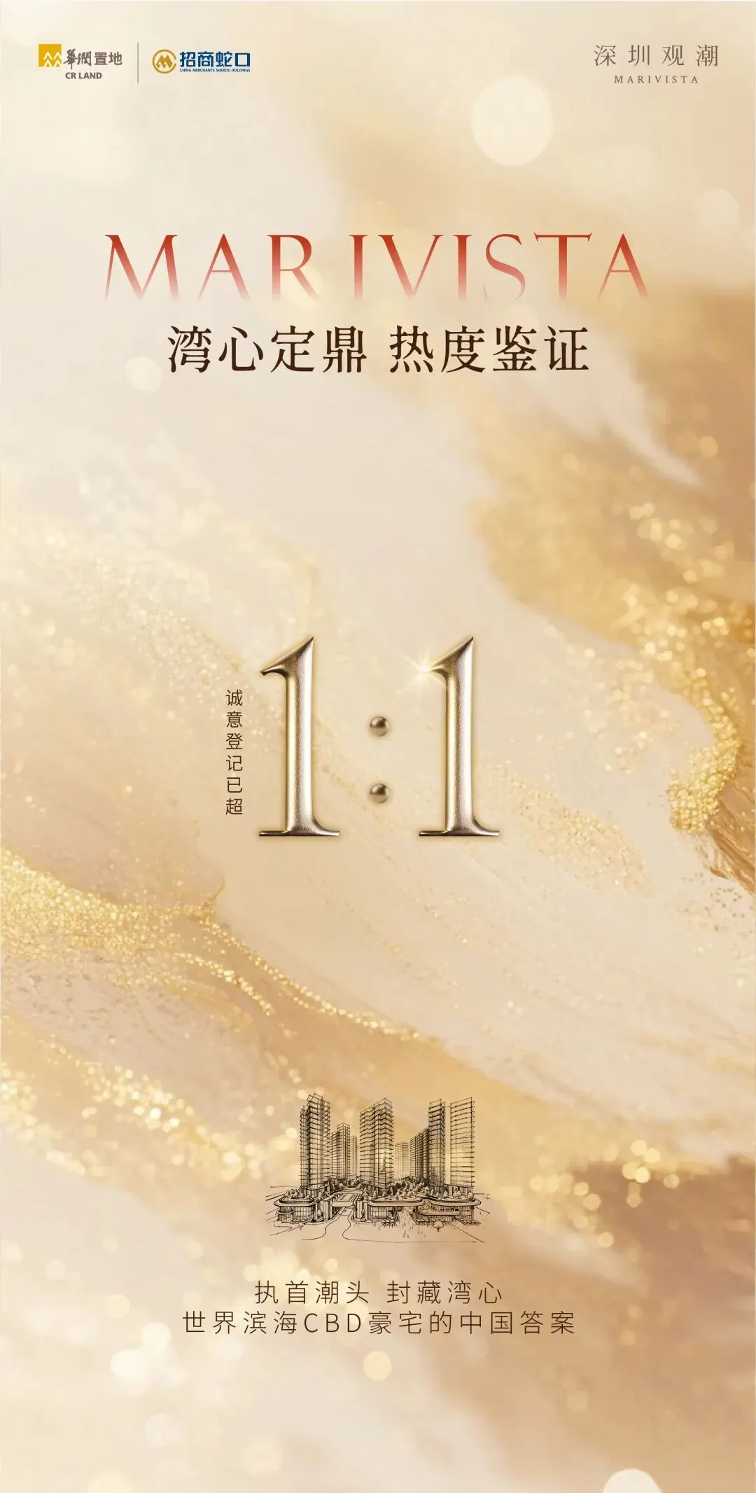 3月,深圳观潮正式启动诚意登记。短短18天时间,首批推出的222套房源,登记量便火速突破400组,诚意登记比超过1:2。