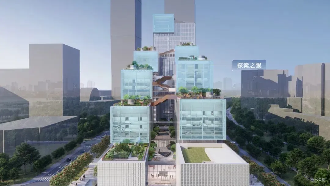深圳园区功能分区:国际高端科技服务枢纽、高端科研区、中试转化基地、国际协同创新区、国际人才社区