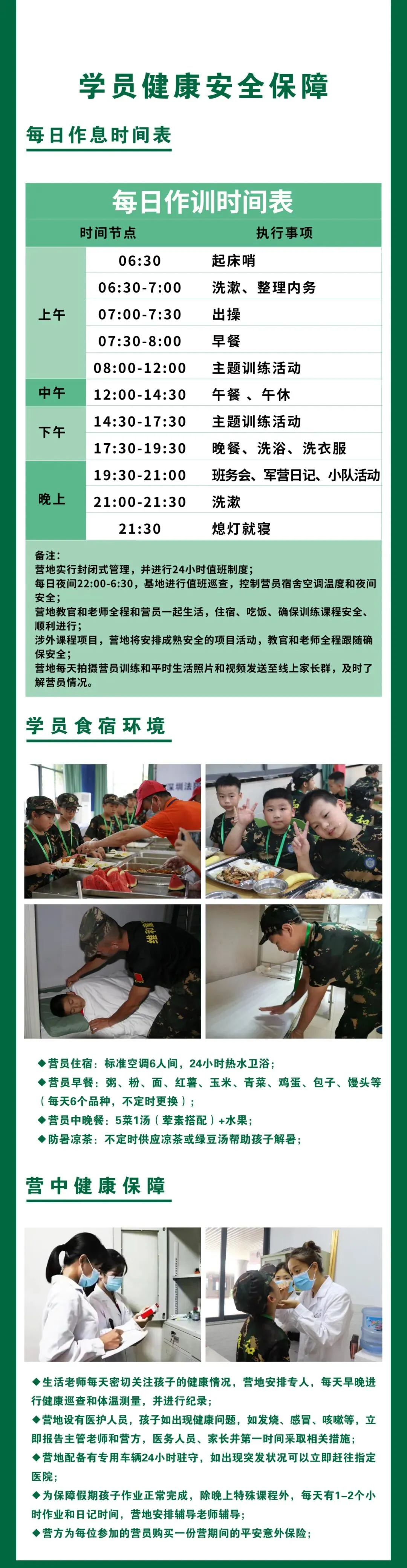 | 总结分享 以班/排为单位,对参营一周训练和心得,做总结和分享,清晰自 己的优缺点和建立未来目标 | | |