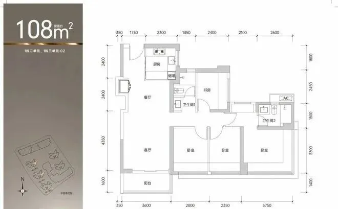 02户型:108平(东南向)单价43700-45200,总价475-491万。