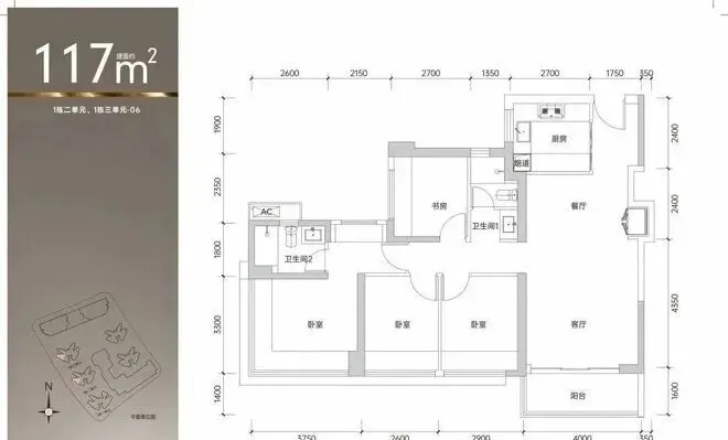 06户型:117平(西南向)单价43500-44000,总价509-520万。
