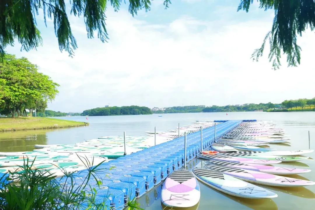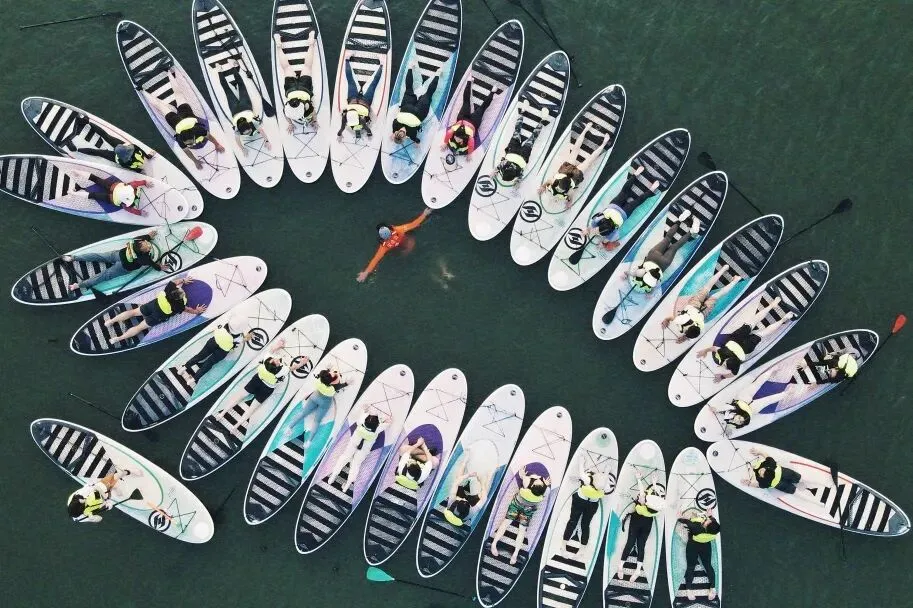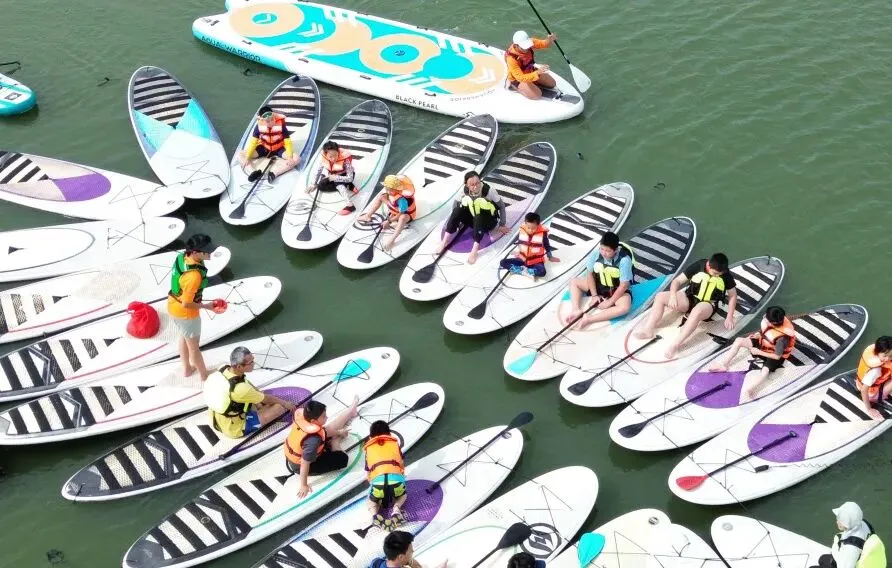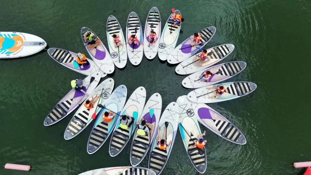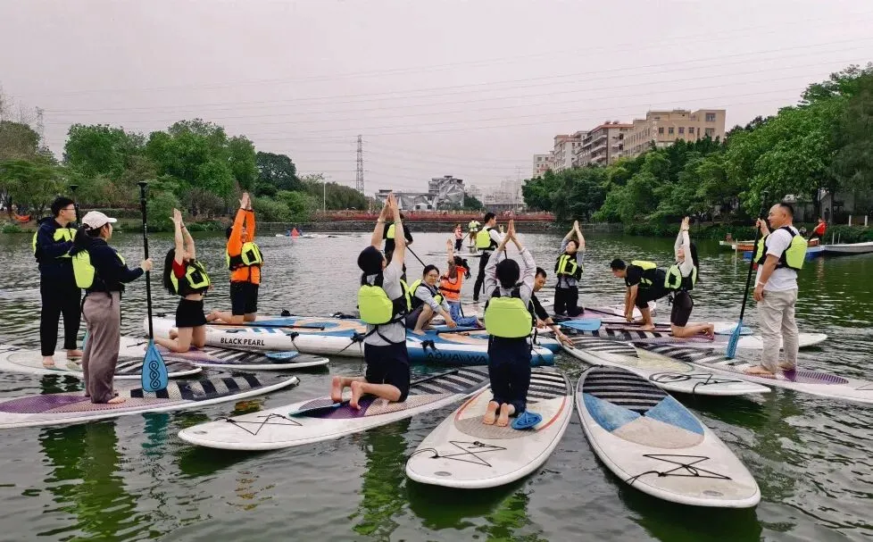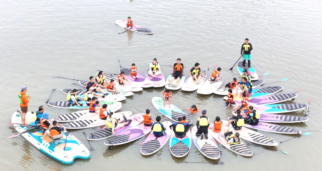 答:桨板是非常安全的水上运动,全程有专业教练带队,管控队伍、保证安全。