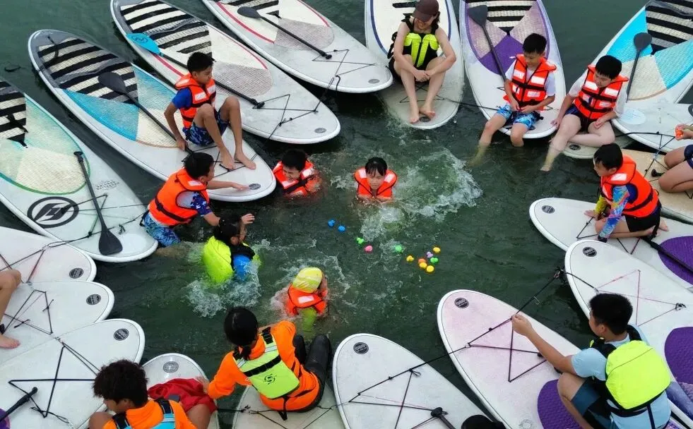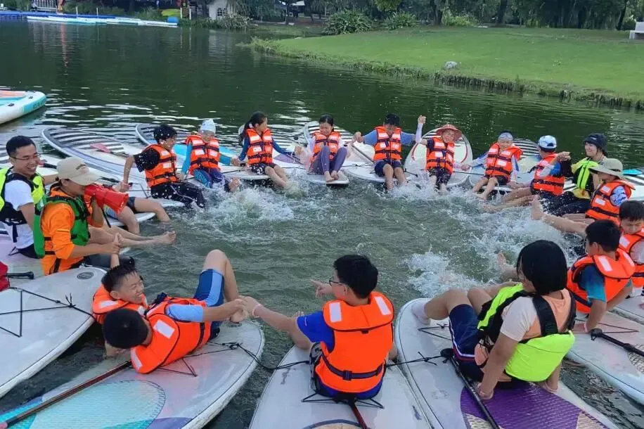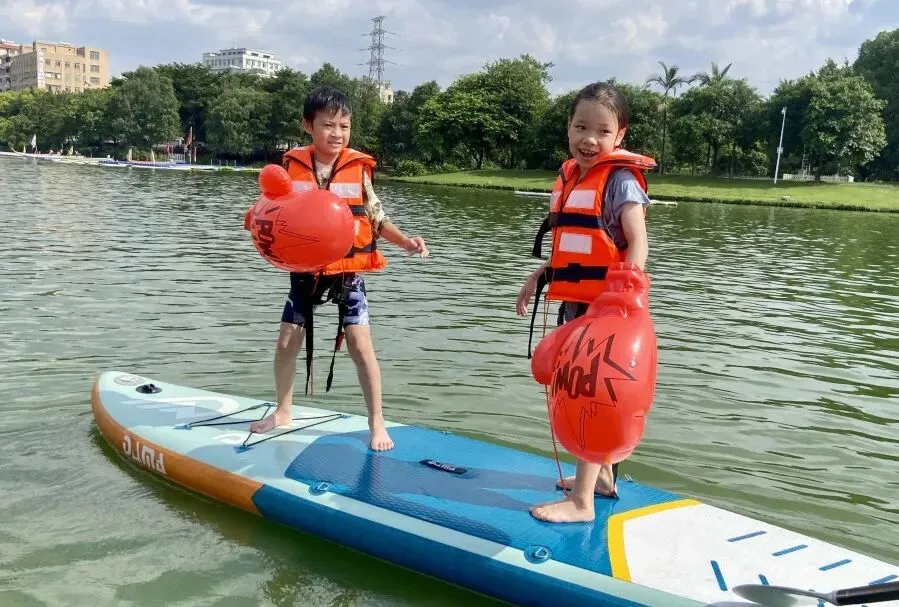 答:完全可以的!全程穿救生衣,大人和孩子都是浮在水上的。怕水的小伙伴,在正确穿戴救生衣、脚绳、学习好桨板技能之后,可以跟随教练附近游玩,还有就是从简单的开始突破,队友一起玩的氛围鼓励也很有促进作用哦。桨板是讲究平衡的运动有很强的亲水性,如果不想下水可以坐着、趴着划板,也有不同乐趣,多加练习掌握平衡之后,也很容易hold住桨板,半小时快速上手解锁站立桨板划行新技能。