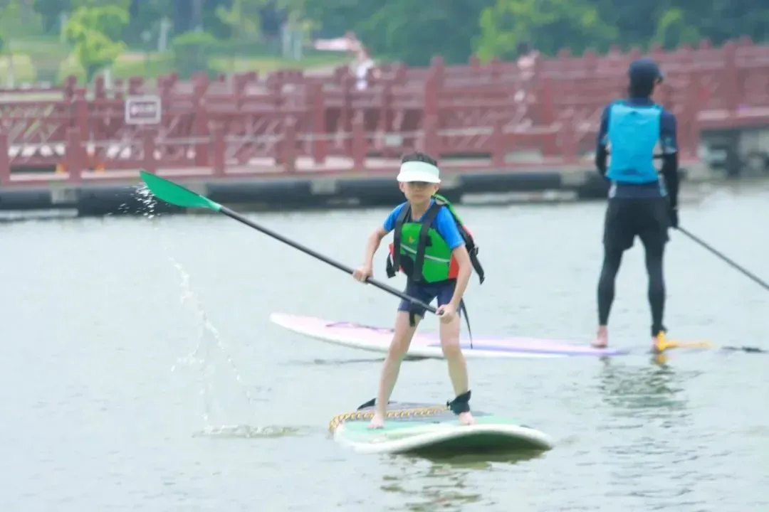 答:桨板运动有多种分类,桨板冲浪、桨板竞速、桨板瑜伽会消耗高卡路里约等于跑步训练;我们基地的桨板活动是休闲划行,全程合计约3-5公里,运动量不会很大,大人小孩都能愉快地玩耍。