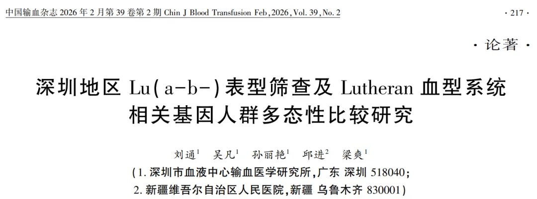 前言血型作为人体重要的遗传标记,在临床输血、器官移植、新生儿溶血病(hemolytic disease of the fetus and newborn, HDFN)防治及法医学个体识别等领域具有不可替代的核心作用。随着分子生物学技术的发展,血型研究已由传统血清学分型逐步向基因分型与单倍型解析转变。根据国际输血协会(ISBT)最新公布的数据,截至2025年8月,已确认48个红细胞血型系统。Lutheran血型系统(LU,ISBT编号005)是由免疫球蛋白超家族成员BCAM(basal cell adhesion molecule,CD239)编码的一类血型系统,目前已鉴定29种抗原。其编码基因LU位于19号染色体,包含15个外显子。尽管Lutheran血型系统在临床输血中的总体意义相对有限,但在输血或妊娠等免疫刺激条件下,机体仍可能产生抗-Luᵃ或抗-Luᵇ抗体,从而引发溶血性输血反应或相关免疫并发症。Lu(a-b-)表型是一种罕见血型,于1961年首次报道,其在人群中的分布频率较低,在中国人群中约为0.022%~0.480%。目前认为该表型主要由三种分子机制导致:(1)LU基因失活突变导致抗原完全缺失(Lunull);(2)红系关键转录因子KLF1基因杂合突变导致抗原表达下调(In(Lu)表型);(3)X染色体相关调控基因GATA1突变(Lumod表型)。其中,以KLF1相关的In(Lu)表型最为常见。本研究以深圳地区汉族人群为主体,联合印度人群及新疆维吾尔族人群,开展Lu(a-b-)稀有血型筛查,并基于第三代测序技术对LU与KLF1基因进行全长单倍型分析,旨在揭示该表型的分子机制及不同人群间的遗传多态性特征,为稀有血型库建设与精准输血提供理论依据。