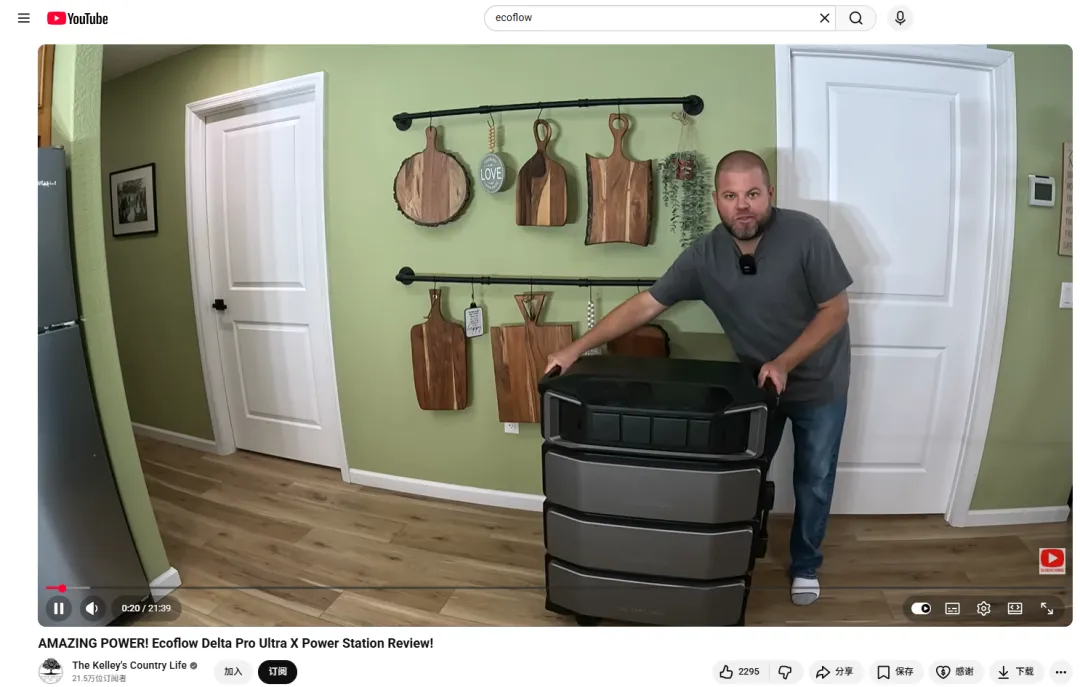 同时,针对北美家庭用户,选择21.5万粉丝的@TKCL,其80.21%的粉丝为美国本土用户,擅长DIY建造和家庭场景实测,通过实际运行中央空调、电烘干机等家电,直观展示产品大功率输出能力,单支视频播放量达118万。