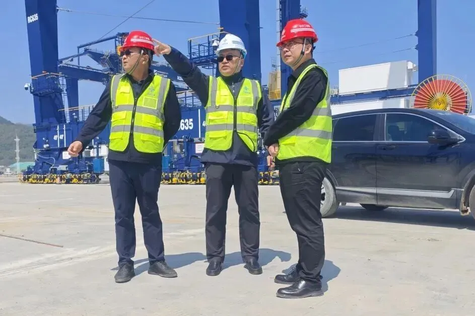 王超听取项目关于施工进展、安全管控、质量提升及文明施工等方面的详细汇报,深入码头作业区、主体结构施工段等关键区域,实地查看施工工艺落实、安全防护措施、环保管控执行等方面的情况。对项目在复杂施工条件下取得的阶段性成果给予充分肯定。