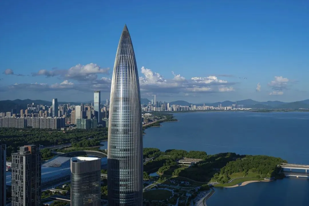 ——华润•春笋大厦,即中国华润大厦,是华润集团在中国内地的总部办公大楼,2018年12月18日启用,其高度392.5米,地上66层,地下5层,既是是深圳知名的标志性建筑,也是深圳湾第一高楼。