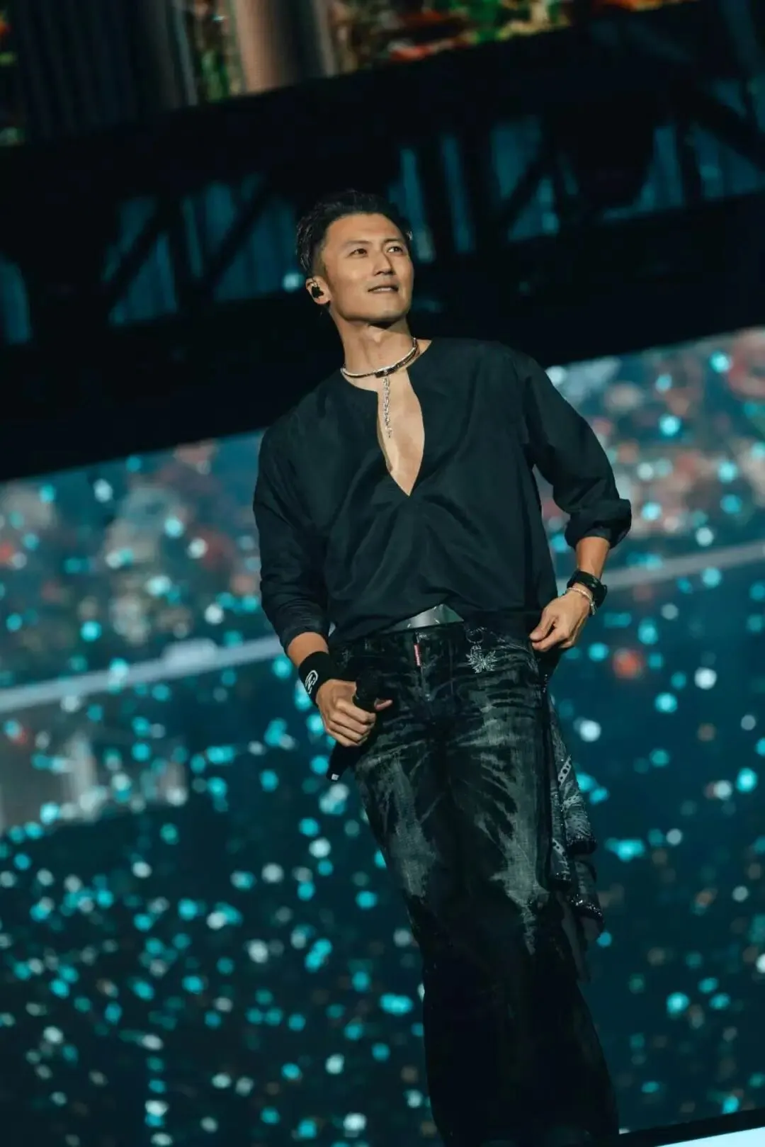 此次演出谢霆锋以全新深V造型亮相,气场全开。在演出过程中,面对突发的耳麦故障,秉持着对自己对舞台的高要求,谢霆锋要求重唱《前前后后左左右右》,第二次演唱的氛围比之前更加浓烈,许多歌迷表示“听两遍真的值了”!