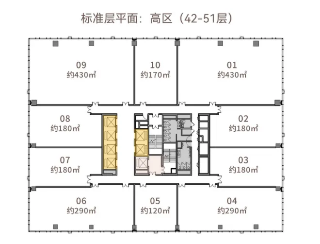🔼 高区(46–51F):天际视野、全景无遮挡,适合总部 / 上市企业、接待型公司(目前主力推售,预约优先)。