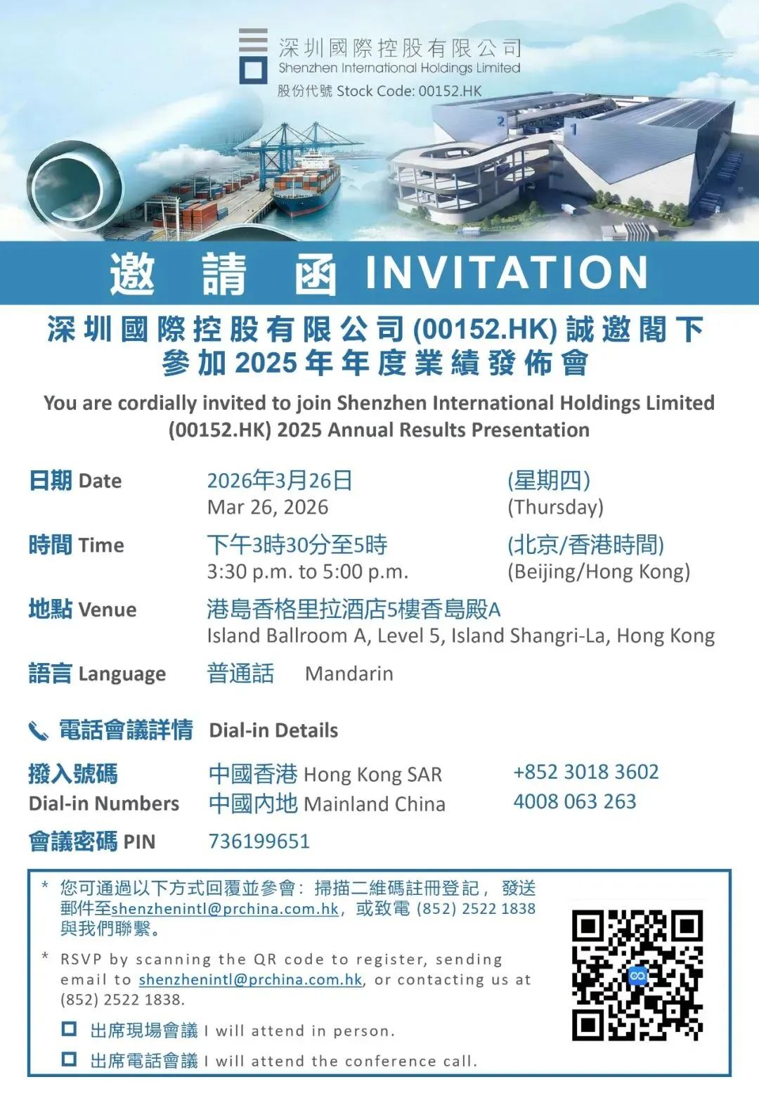 【温馨提示】深圳国际(00152.HK)2025年度业绩发布会