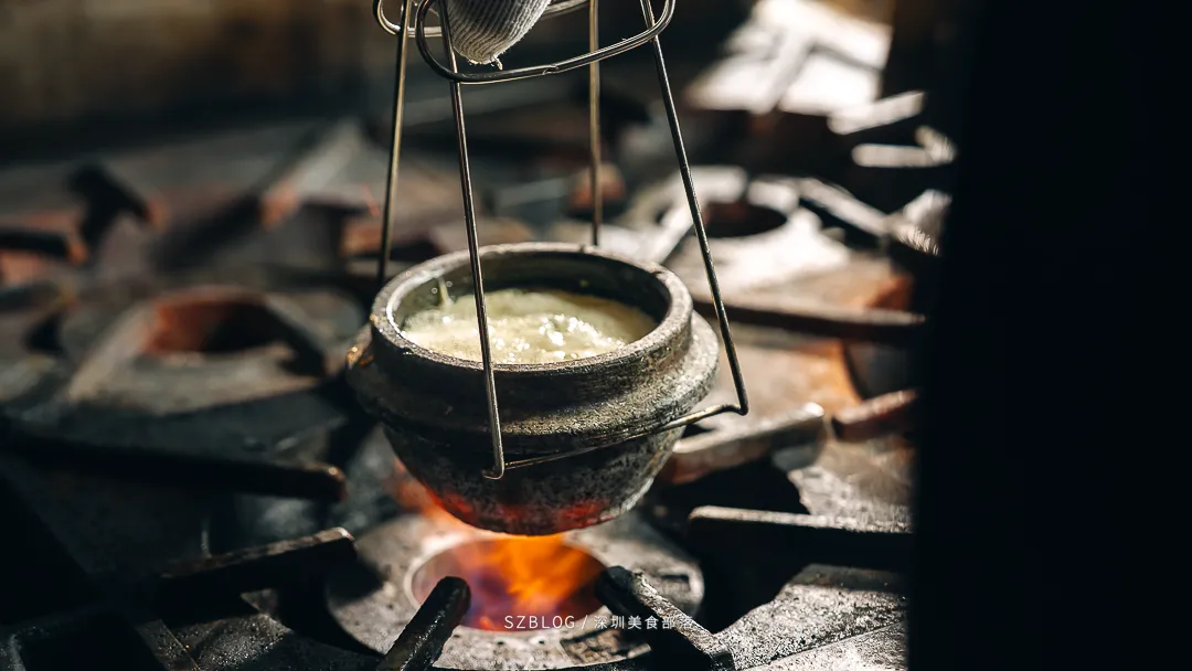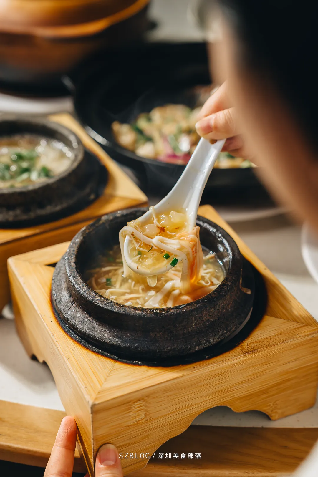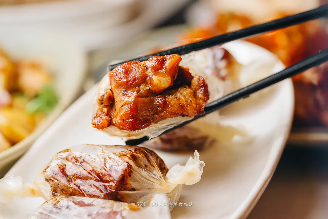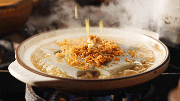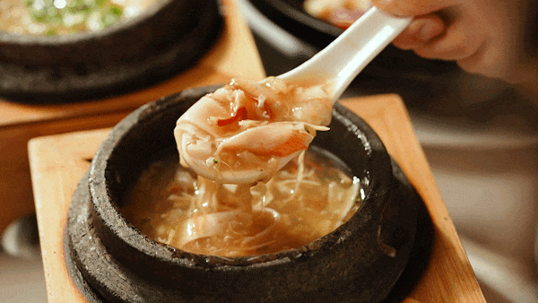 这道「金奖石锅翅」上桌前把石锅烧到300度,端上来时还在咕嘟冒泡,有点像升级版的港式碗仔翅。汤底是用瘦肉、排骨、老鸡等慢熬了7个钟,喝起来是自然的肉香,不腻口。还加了鱼翅,口感更滑。