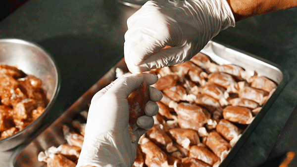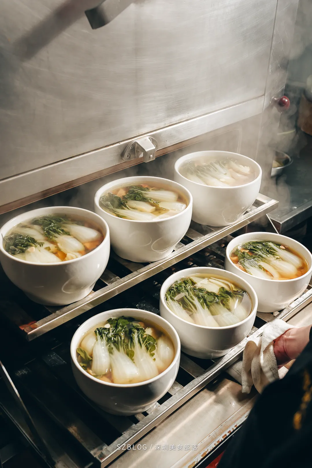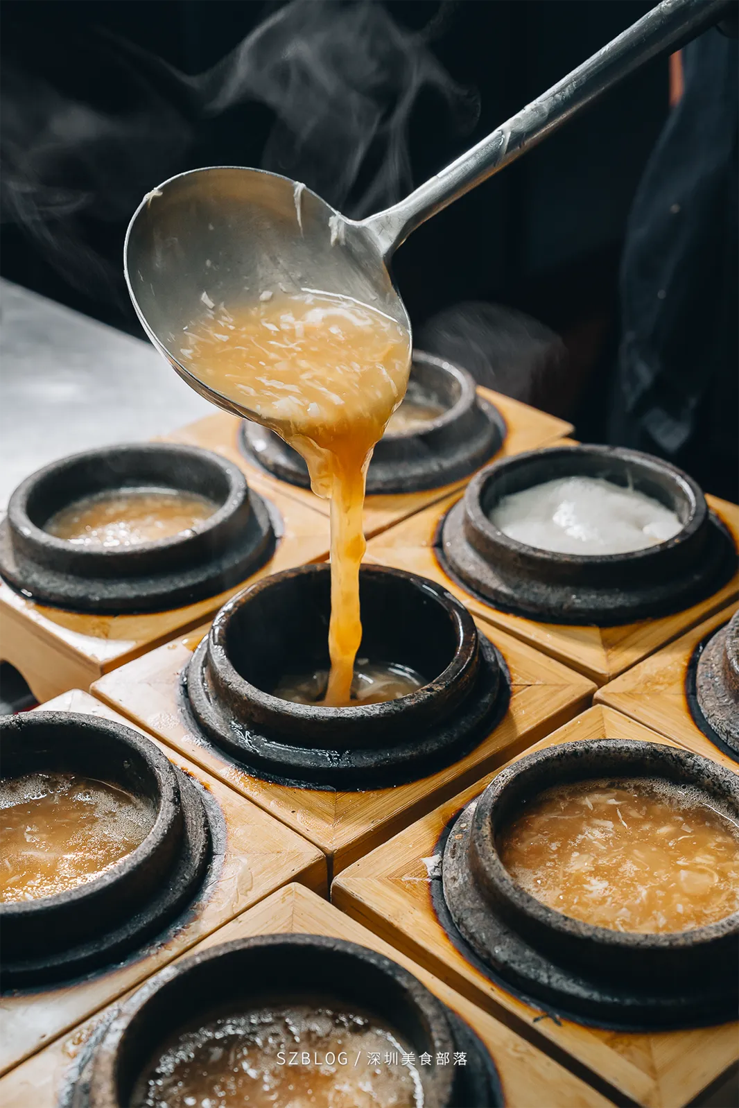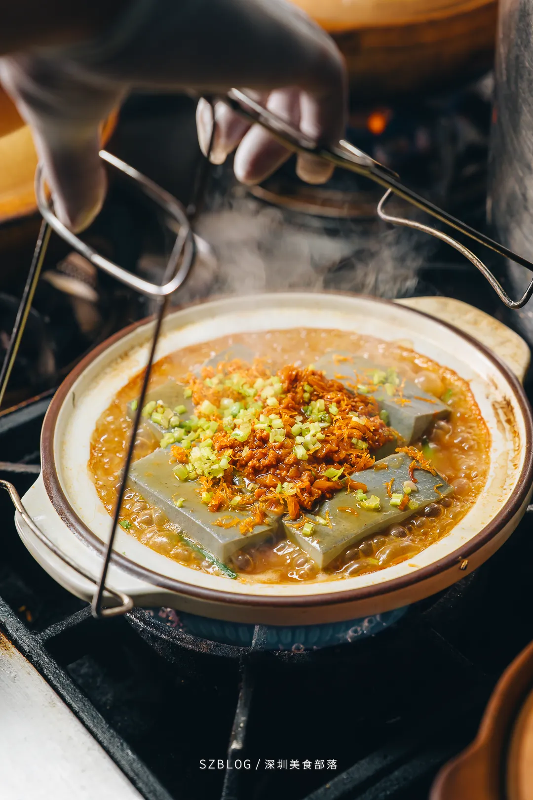这道「金奖石锅翅」上桌前把石锅烧到300度,端上来时还在咕嘟冒泡,有点像升级版的港式碗仔翅。汤底是用瘦肉、排骨、老鸡等慢熬了7个钟,喝起来是自然的肉香,不腻口。还加了鱼翅,口感更滑。