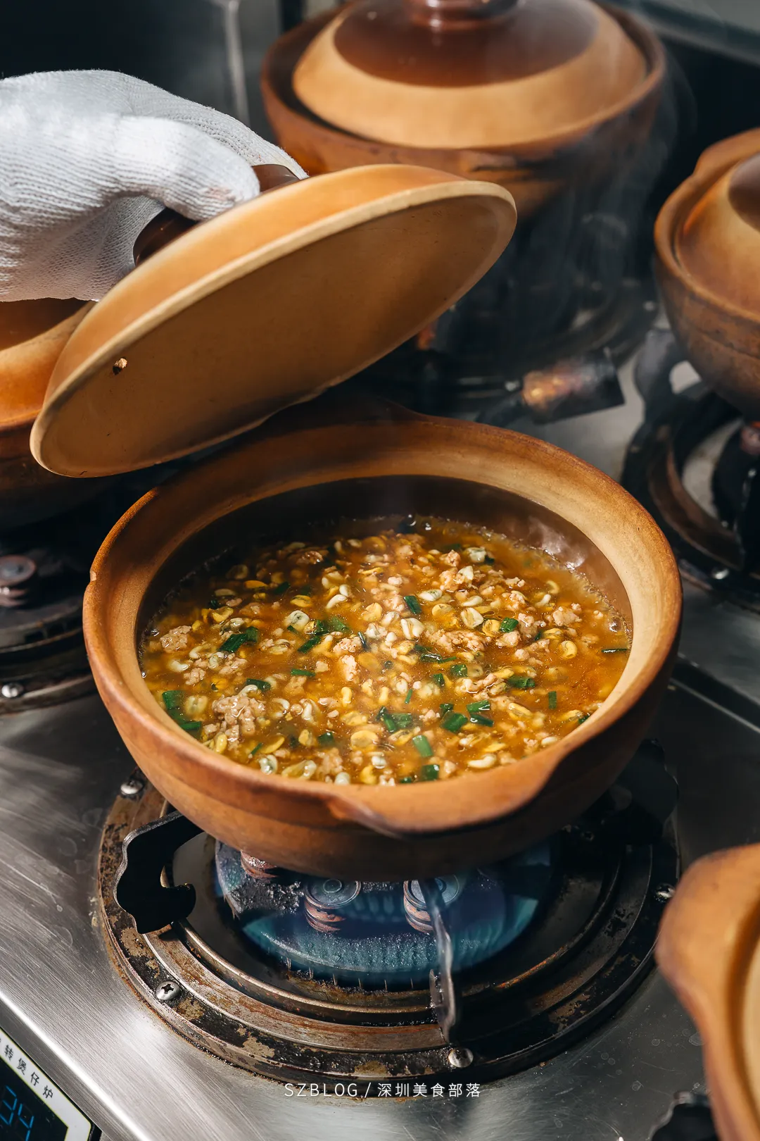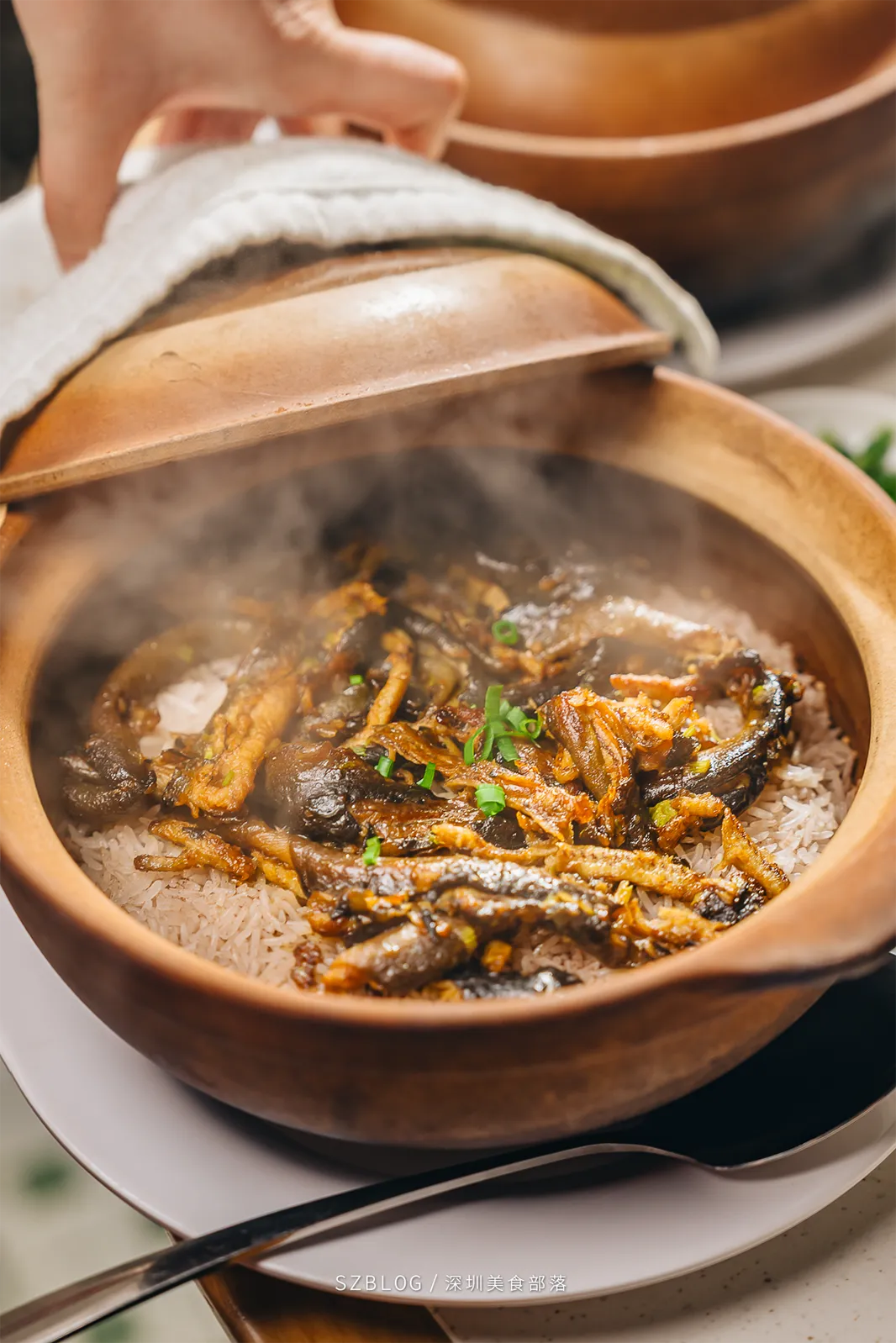 这份煲仔饭,长的就和平时的不太一样。用的是潮汕人常吃的一种海鲜:薄壳米。个头小小的,口感像“缩小版的生蚝”。