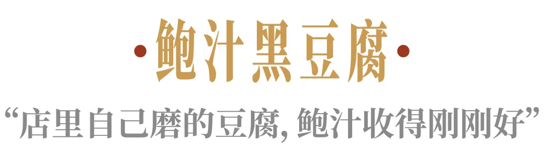 这道「鲍汁黑豆腐」是店里自己用黑豆磨的豆腐,很有豆香。鲍汁也收得很浓,挂在豆腐上。一口下去滑嫩得很,豆香味足,汁也够鲜。
