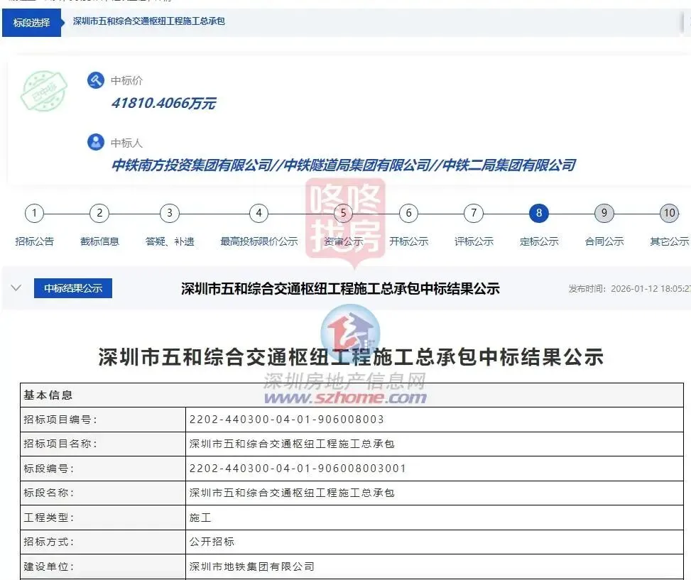 近日,深圳市五和综合交通枢纽工程施工总承包中标结果公示。