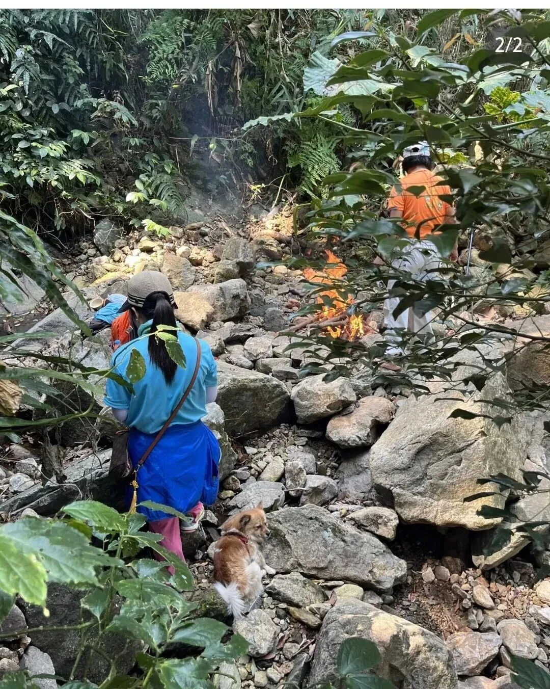 火势旺盛,火苗约两尺高,周边遍布枯枝落叶,一两米外就是密林,画面让人揪心。