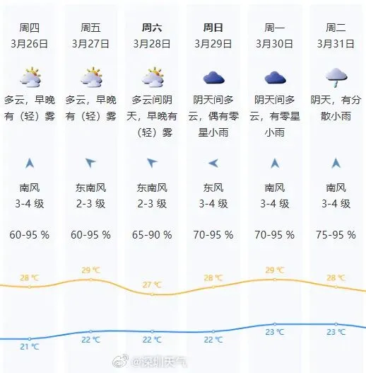 深圳天气以多云为主