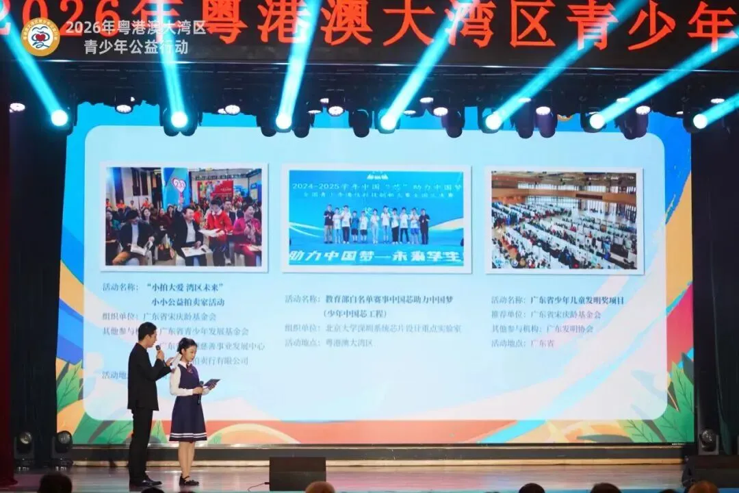 活动回顾了2025年公益项目成果。过去一年,共有粤港澳大湾区300余所学校、120多个社会组织和公益机构参与活动,全年线上线下参与总人数达157万。代表性公益项目展示环节特别策划了公益短剧《如愿——致敬孙中山宋庆龄先生》,精彩再现孙中山与宋庆龄投身革命和救国为民的历程,并邀请“青少年公益行动杯”大湾区棒垒球邀请赛、“少年中国芯”工程、“金笔奖”中文硬笔书法比赛等一批代表性公益项目的负责人、受益青少年、志愿者代表同台讲述公益故事,把两位伟人的爱国精神与现代科技、文化、体育等公益项目进行跨时空联结,从科技创新、体育交流、公益实践等方面生动展现粤港澳青少年精神传承和公益创新活力。