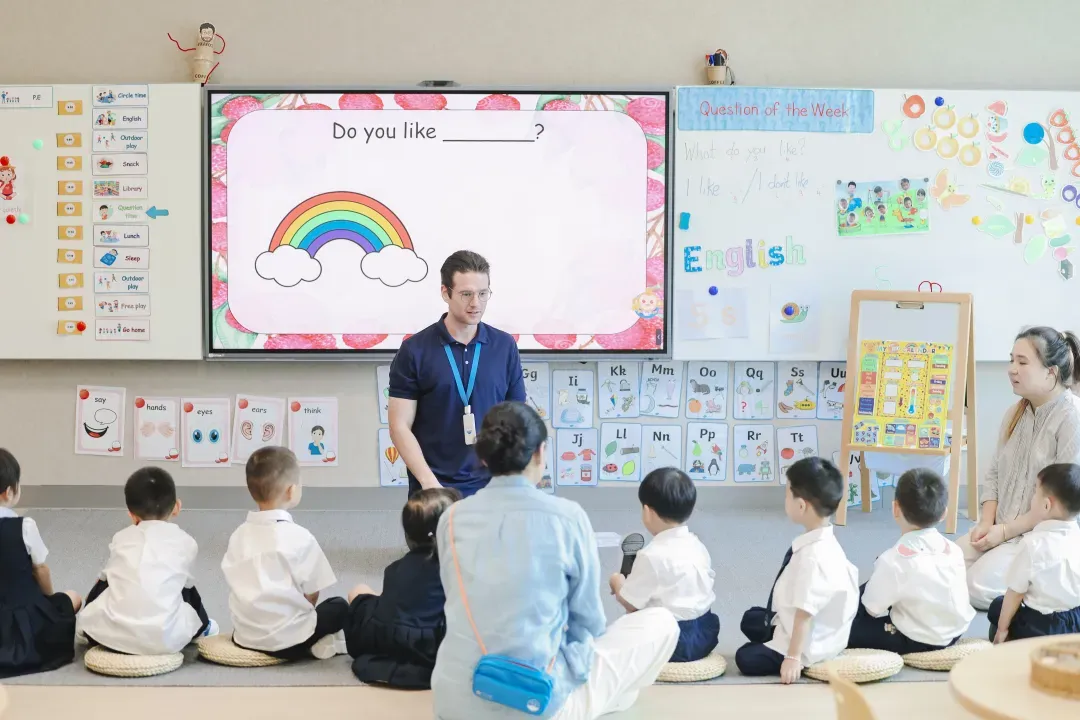 关注到明湾是因为听说它们的幼儿园大班号称有80%的时间都用英语交流。说实话,我当时心里是打鼓的:孩子在只有一节英文课的环境里都抗拒,一下子扔到几乎全英文环境里,会不会直接崩溃?但我还是想赌一把。我想着,反正幼儿园阶段试错成本低,实在不行还能转学,就当是“开盲盒”吧。开学才三个月,Kayla的变化可以用“翻天覆地”来形容,经常冒出一些连我都没听过的单词。前两天回家,我听见她一边玩玩具,一边哼歌,仔细一听,居然是英文版《疯狂动物城》的主题曲!发音还特别地道。△明湾幼儿园的英文课