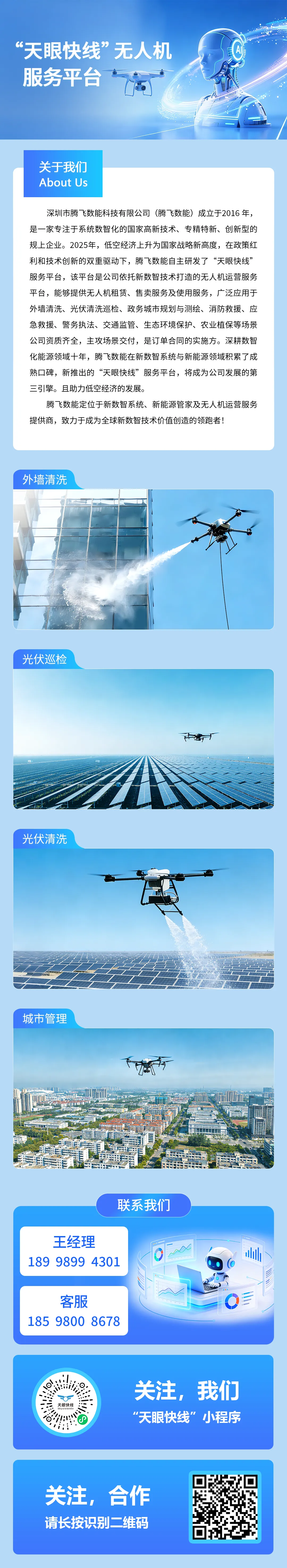 在摩天大楼林立的深圳,玻璃幕墙是城市天际线的名片,更是楼宇运维的长期难题。传统人工清洗不仅背负极高安全风险、触碰环保合规红线,更深陷人力断层、成本高企的行业困局。深圳市腾飞数能科技有限公司,以自主研发工业级无人机清洗系统,用硬核科技重构高空清洁标准——让安全可控、让环保可量化、让效率可突破,真正实现“以机代人、智慧升空”。一、行业痛点:传统清洗绕不开的“三座大山”