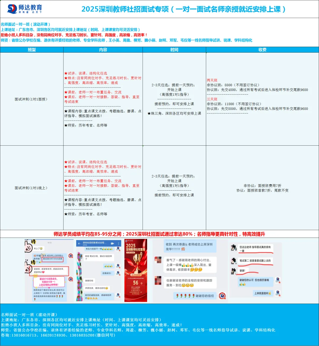 深圳教师面试冲刺,1对1考官、名师指导;持续滚动开课