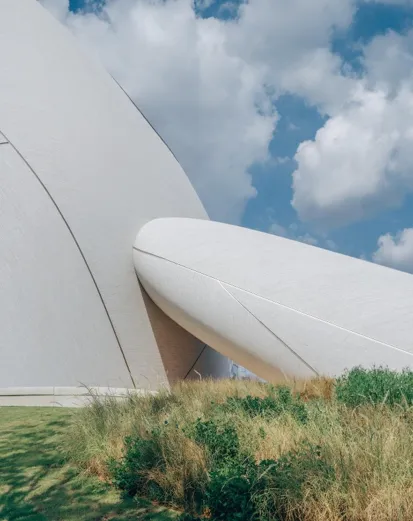 又如最新作品深圳灣文化廣場,馬岩松希望為城市營造充滿自由和想像力的氛圍。他把花崗岩轉化為圓潤的「原石」,用抽象形式塑造一種既熟悉又陌生的環境。這種環境抽空一切既有經驗,使人只能寄託於自由和想像力、好奇心和探知欲。這也是馬岩松認為文化建築最重要的功能:引起人們內心的情感共鳴,進而開啟新的可能性。