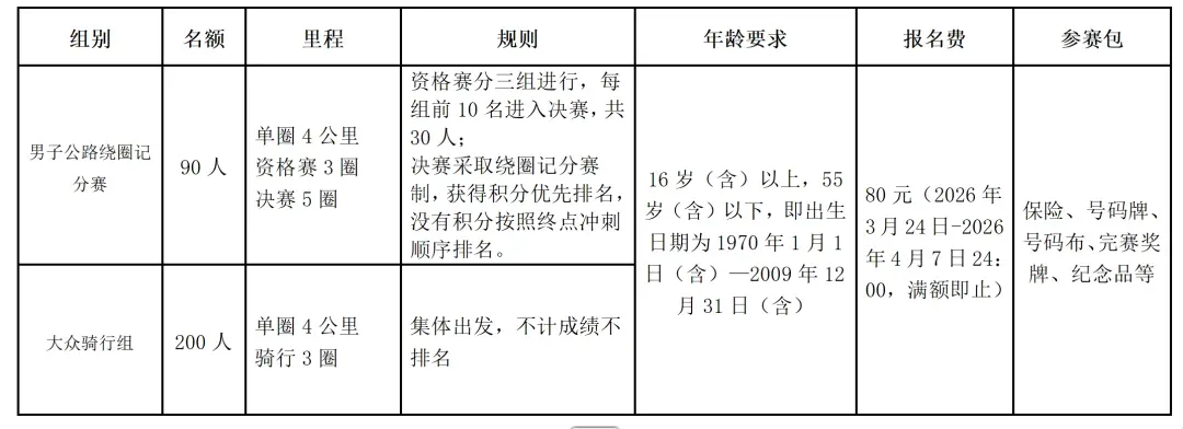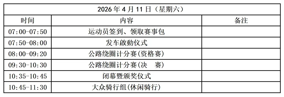 骑行3圈,不限车型(禁止死飞、固齿参赛),不设奖励。