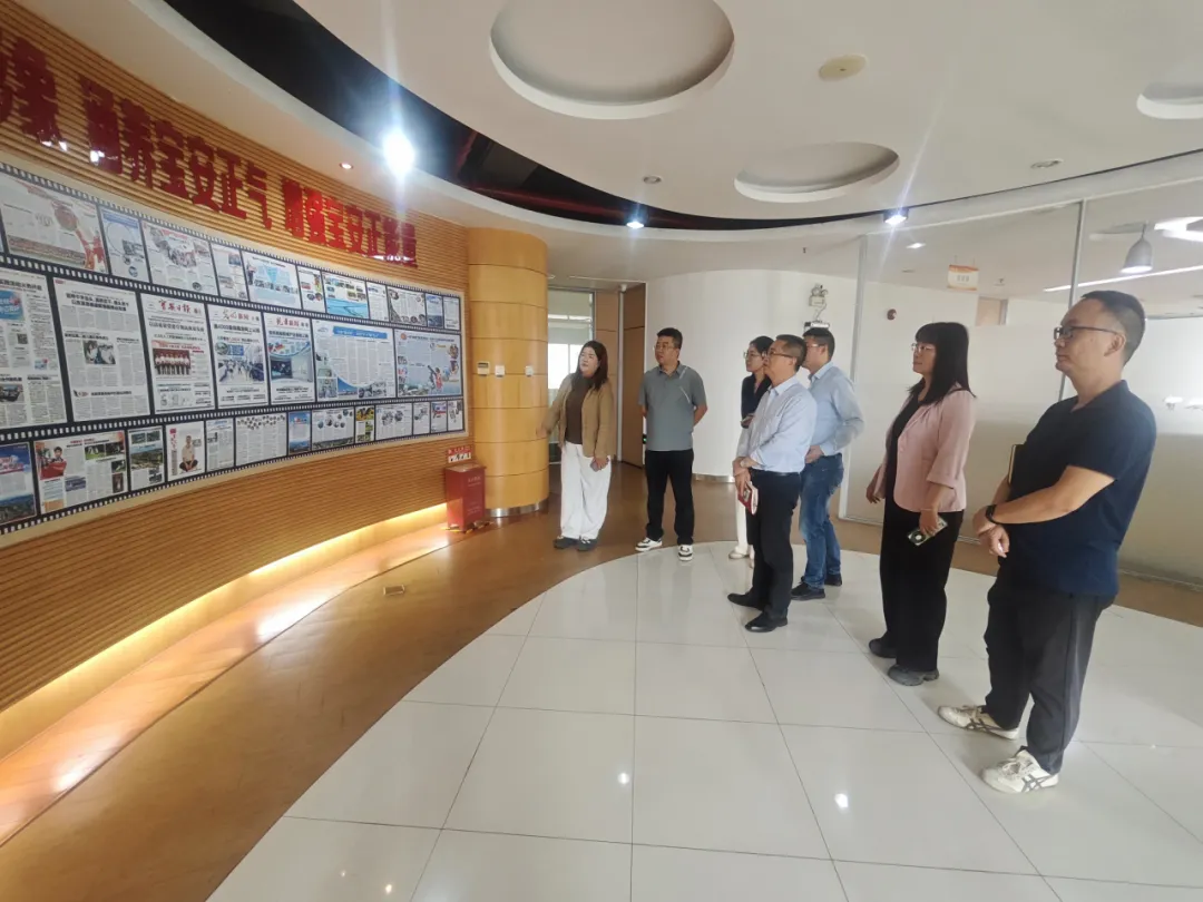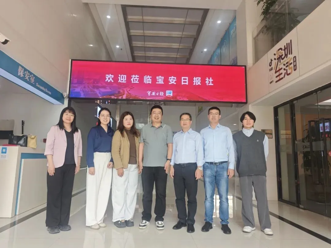 宝安日报社副总编辑刘强、综合办公室主任周德萌、综合办公室常务副主任郑伊洵、视觉创意部编辑余洁笑等与美术与设计学院一行开展了活动对接,学院一行实地参观了报社的直播间、融媒体中心,详细了解报社的发展历程、全媒体矩阵建设及融合转型成果。