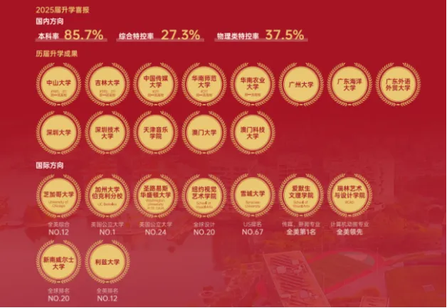 国内高考:小班名师深耕高考,一生一策,定制化提分。2025年本科率85.7%,物理类特控率37.5%,成功助力学子考入中山大学、吉林大学、华南师范大学、中国传媒大学等985、211、“双一流”高校,本科率、特控率稳居深圳民办高中前列。
