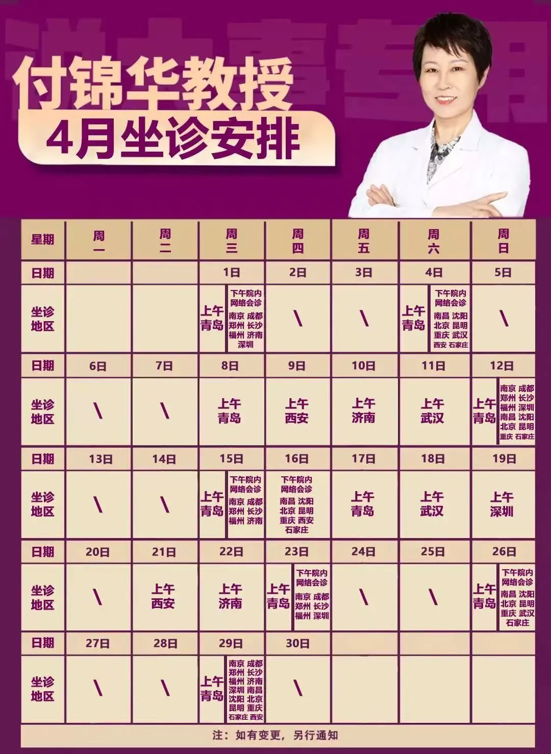 为了您的身心健康及方便来院就诊,按照医院安排,现将下2026年4月的门诊专家坐诊时间(详见排班表)安排如下: