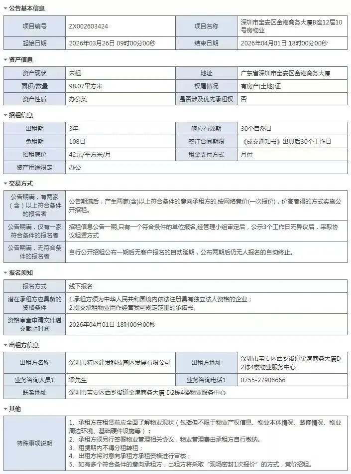 当前位置:首页>深圳>深圳市宝安区金港商务大厦B座12层10号房物业招租信息公告