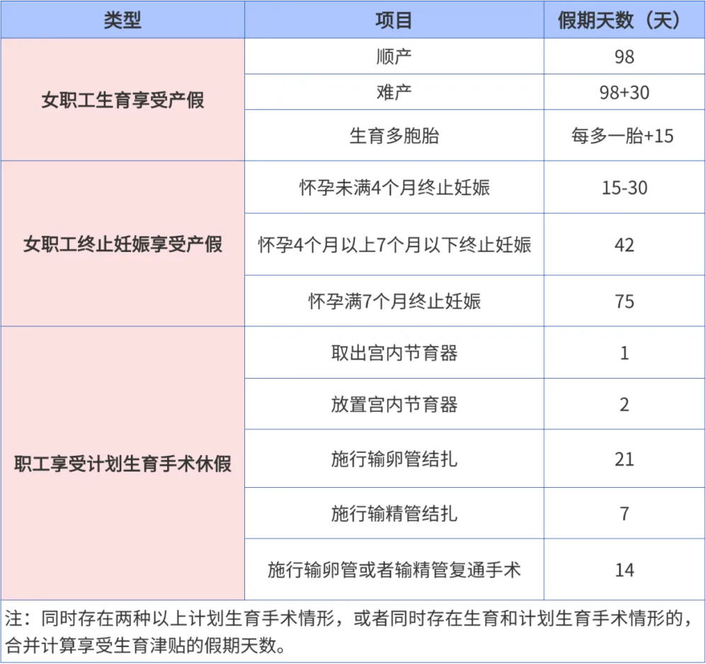 ★ 职工享受生育津贴的假期天数: