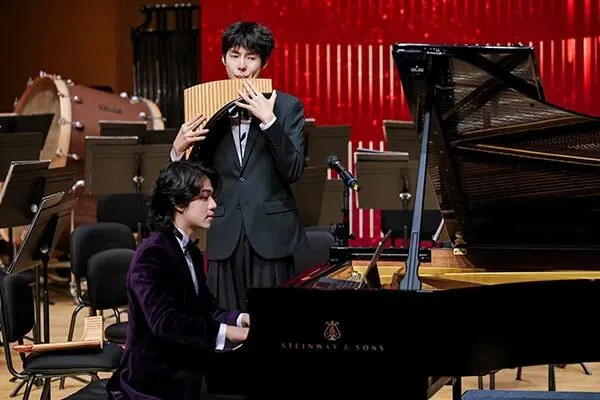 聚光灯亮起,21岁的李岱沣——大家更习惯叫他“小岱”——手持排箫,与钢琴家阮扬扬并肩而立。当《如愿》的旋律在音乐厅上空响起,箫声与琴声交织缠绕,如诉如歌。