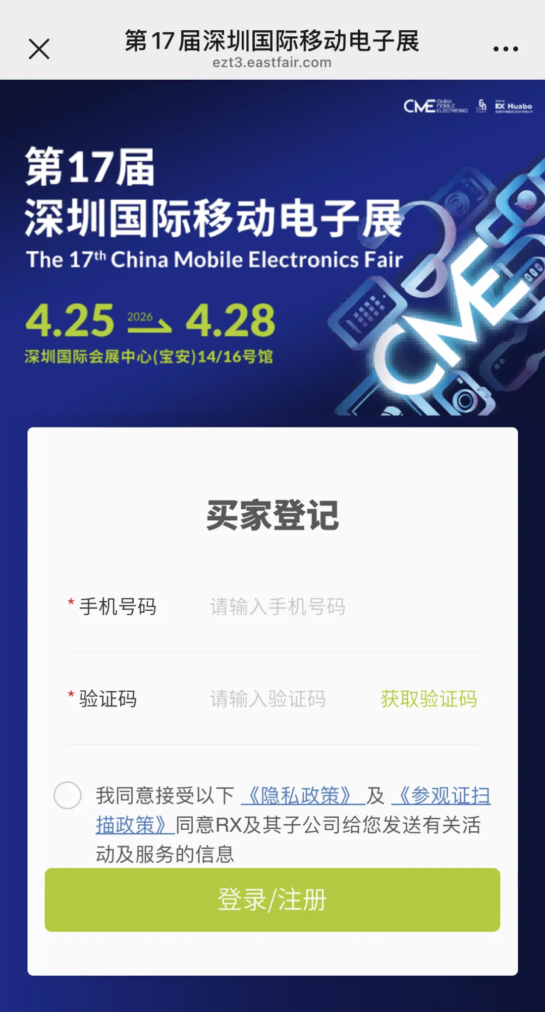 展会名称:第17届深圳国际移动电⼦展(CME)