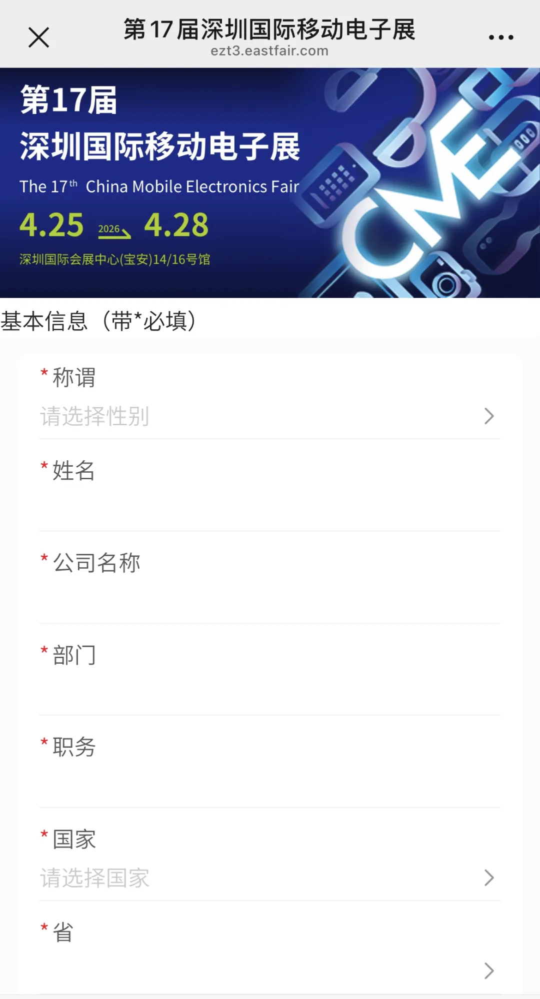 •为方便您接收预登记确认函及后期主办方参观须知,请务必准确填写手机、邮箱等联系信息;