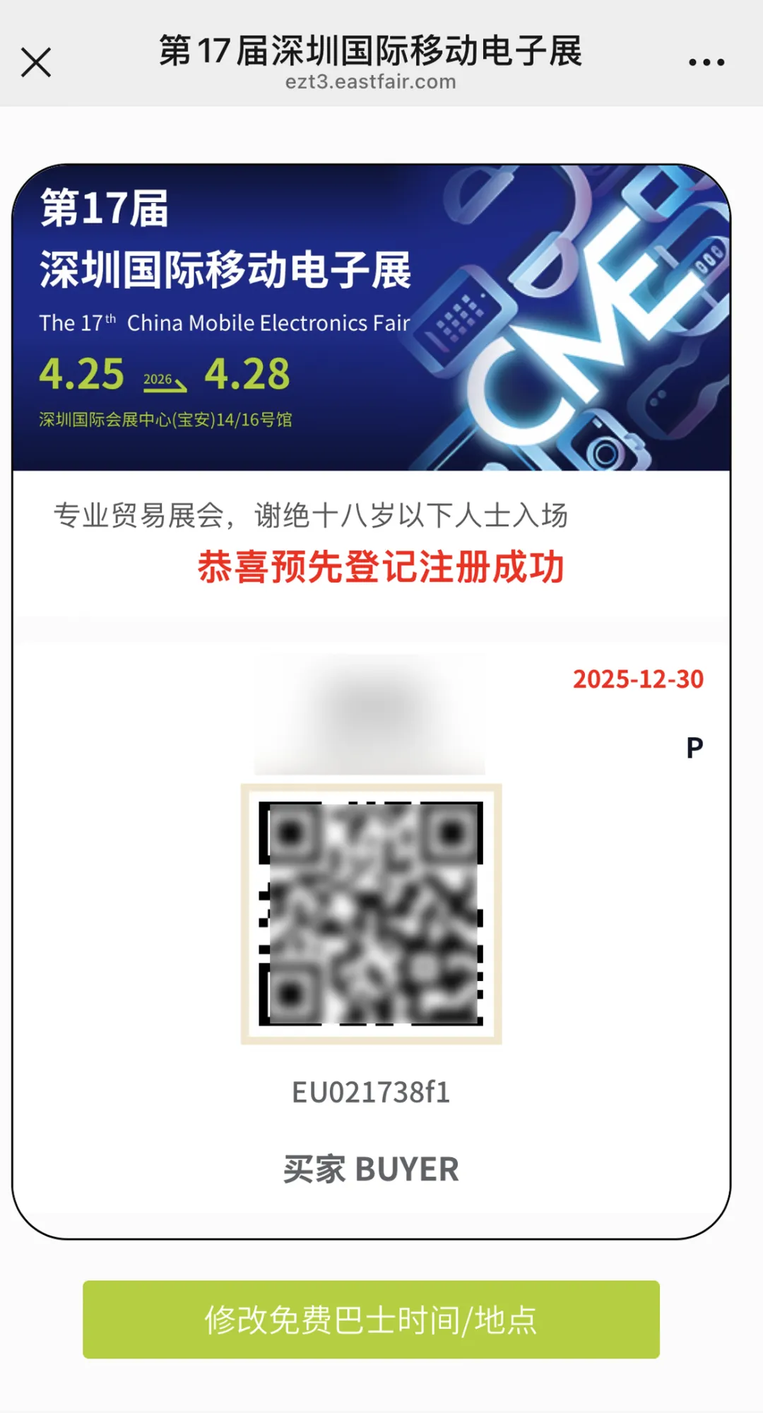 •完成预登记问卷后即可成功注册参观报名,您将收到预登记确认函/电子胸卡;