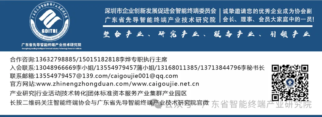 深圳市企业创新发展促进会智能终端委员会,根据深圳市“20+8”产业集群政策和《深圳市培育发展智能终端产业集群行动计划(2022-205)》发展战略及政策指导下,由GDITRI研究院牵头组建成立的行业性、地方性、非营利性的社会团体,简称“终端协会”;广东省智联企业家俱乐部为产业集群核心智囊团、智能终端与智能制造行业期刊为指定会刊!