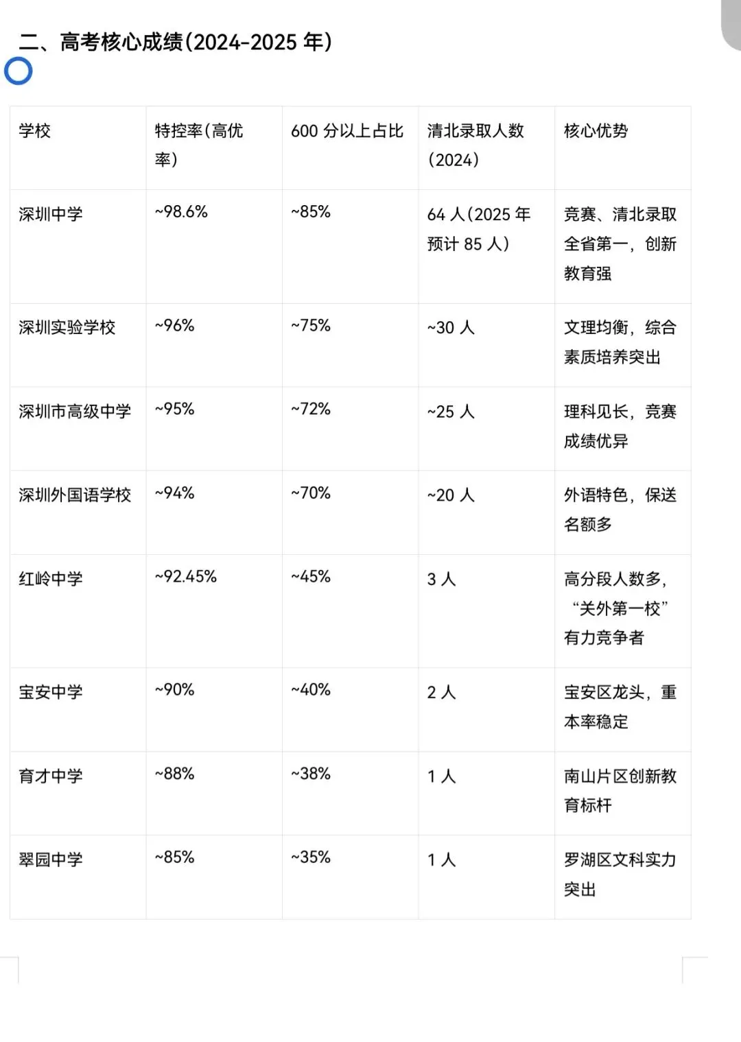 深圳实验学校:位于福田区,文理均衡,重视综合素质培养,高考特控率与高分段表现稳定。