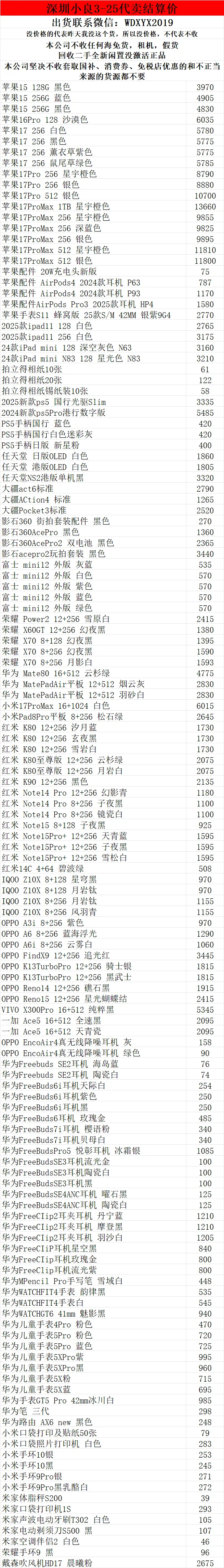 >深圳小良2026.3.25电子产品代卖结算价(美妆价格小程序查看)