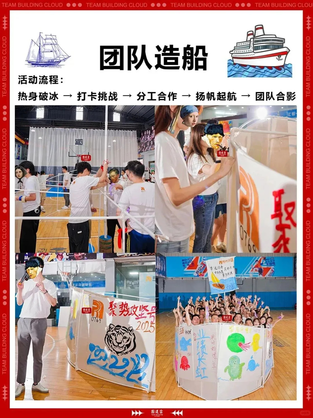 💎【团建收益】全员携手协作,利用指定物料合力打造巨型帆船模型。-