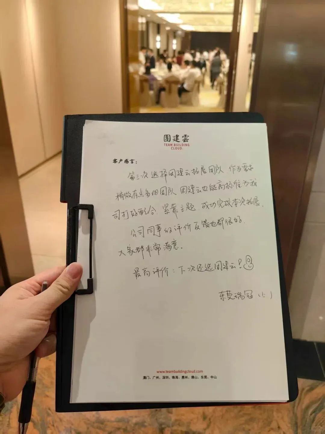 💡【客户口碑】第三次选择团建云,作为要求稍微有点多的团队,团建云也能高标准为我司打好配合。靠紧主题,成功完成本次拓展。公司同事的评价反馈也都很好,大家都非常满意。最高评价:下次还选团建云-