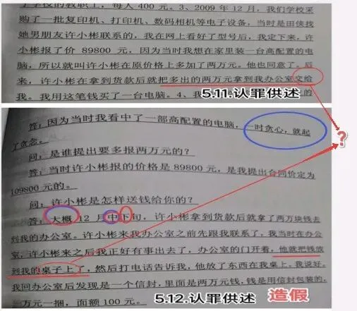另外,上图最顶左上的红?号,5月13日的认罪供述第一问“你还有什么问题…”中的“还”字被划去且无修改烙印,进一步坐实了供述系伪造的留下的痕迹。