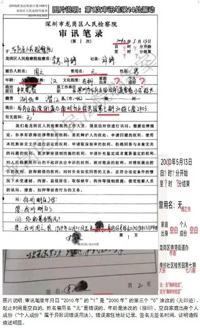 ①第一次审讯笔录存在14处明显造假痕迹