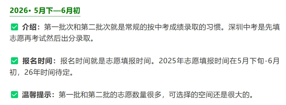 别担心!这篇文章为你梳理清楚深圳中考各大录取批次的核心信息包括招生介绍、报名时间、报考优势帮你精准把握升学方向从容应对志愿填报!