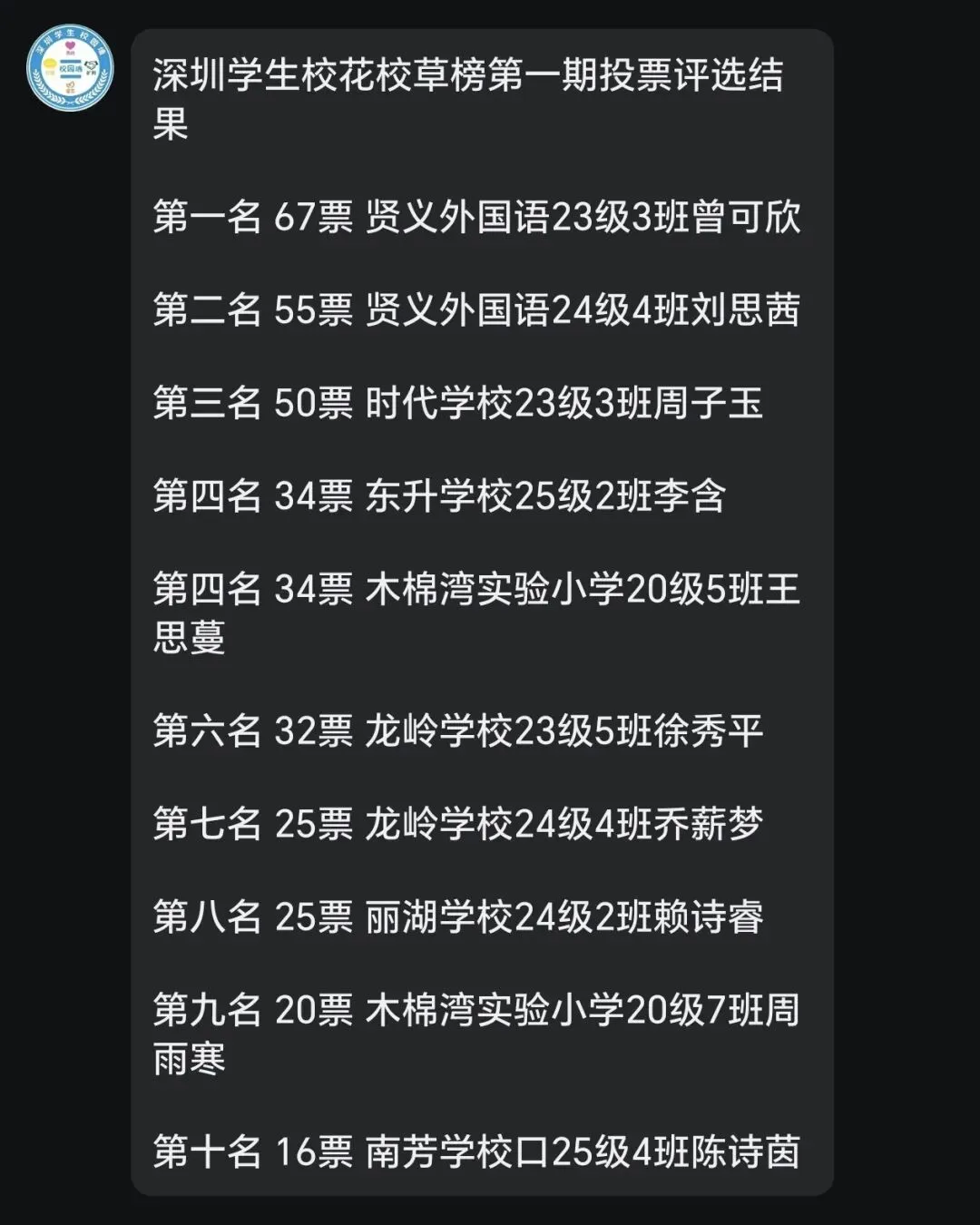 深圳学生校花校草榜第一期评选